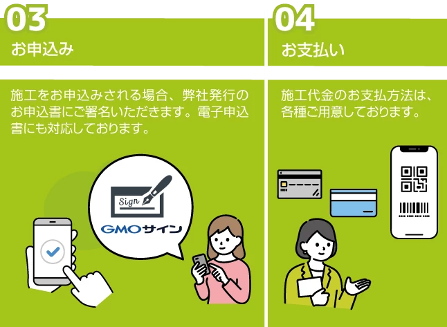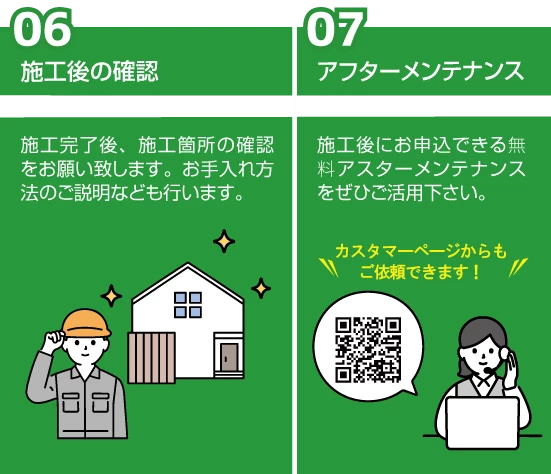 初期不良はもちろん、施工後のトラブルや性能面でも保証させていただきます。